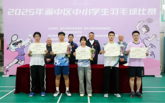 本次赛事为期两天,设有小学甲组、小学乙组、初中组、高中组四个组别,竞赛项目涵盖男、女子单打,男、女子双打及混合双打。来自全区31所中小学校的200余名学生参赛。赛场上,选手们挥洒汗水、奋勇拼搏,充分展现了渝中区青少年蓬勃向上的精神风貌。最终,巴蜀小学、人和街小学、二十九中实验学校、职教中心分别斩获小学甲组、乙组、初中组、高中组团体冠军头衔。