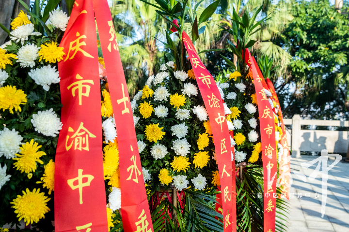 晨风拂面,暖阳和煦。佛图关公园苍松滴翠,草木葱茏,杨闇公烈士纪念铜像巍然耸立。铜像前,以渝中区委,区人大常委会,区政府,区政协,驻区解放军和武警部队,渝中区各民主党派、工商联和无党派人士,渝中区各人民团体、各界群众,老战士、老同志和烈士亲属,渝中区少先队员名义敬献的花篮一字排开,红色缎带上书“烈士永垂不朽”,现场气氛庄严肃穆。