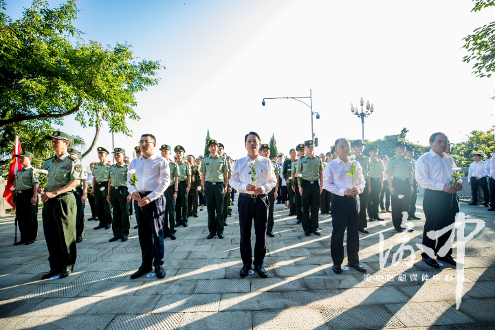 上午8时许,烈士纪念日敬献花篮仪式正式开始。参加仪式的各界代表高唱中华人民共和国国歌。