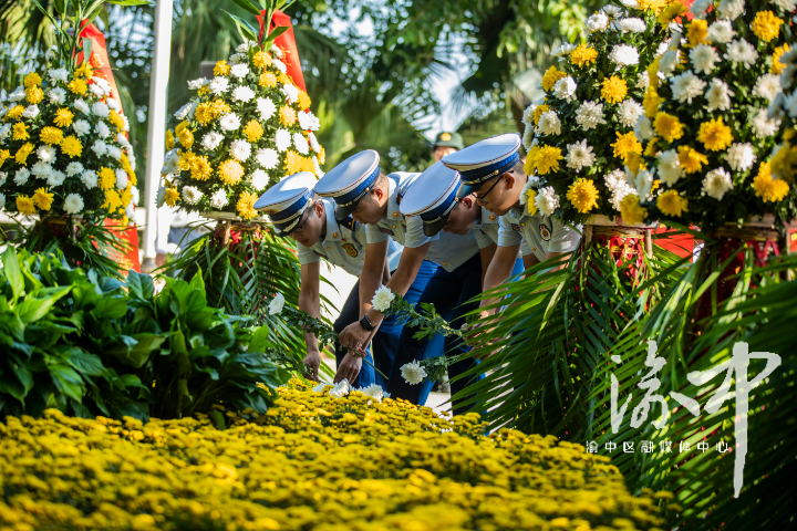 9月30日,烈士纪念日。今天上午,在佛图关公园杨闇公烈士纪念铜像前,渝中区隆重举行向革命烈士敬献花篮仪式,缅怀英烈功勋,弘扬革命传统。渝中区委书记赵世庆,区委副书记、区政府代理区长黄茂军,区人大常委会主任何积光,区政协主席陈大奎出席,区委常委、组织部部长王志宏主持,区领导严培、孔新军、赵元政参加。