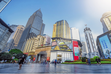 依托中国西部第一条商业步行街解放碑、亚洲最大的单体商业龙湖时代天街,渝中形成了解放碑、大坪两大“百亿级”商圈。化龙桥商圈引入全球化时尚零售百货老佛爷。