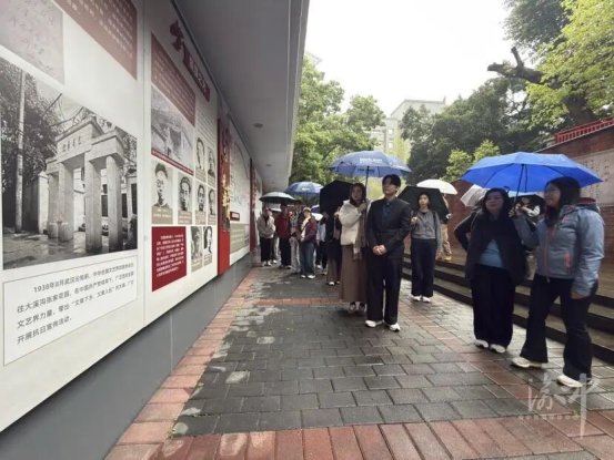 大溪沟街道人和街社区是一片有着光荣革命传统的红色热土。早在1926年1月,在辖区人民路117号重庆中法学校内,诞生了重庆最早的党组织——中共重庆支部。在社区负责人的引导下,交流团在红色历史文化长廊前驻足参观,聆听杨闇公等革命先辈的故事,了解革命遗址的历史渊源,感悟巴渝大地上代代相传的红色基因与精神力量。