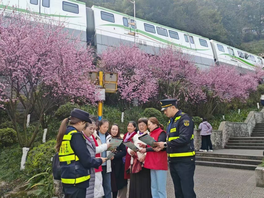 初春时节,渝中区佛图关片区美人梅竞相绽放,轨道交通2号线列车穿行花海,“开往春天的列车”再度成为山城最动人的风景。不同于往年,今年化龙桥街道将专项护航行动提前至除夕启动,这也是其连续第4年以“爱红岩”志愿服务为核心,织密安全保障网,让新春暖意与春日花香相伴,守护市民、游客舒心赏花、安心过节。