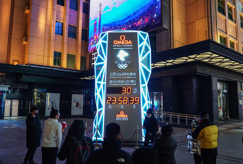 这是1月4日拍摄的位于北京王府井大街的北京2022年冬奥会倒计时牌。