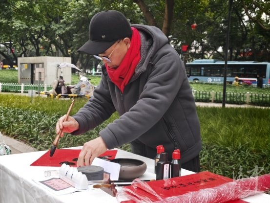 此外,活动还邀请书法家现场挥毫泼墨,为居民免费书写春联和“福”字。一副副墨香四溢的春联,一个个寓意吉祥的“福”字,将新春祝福与“垃圾分类、绿色过年”的倡导一并送到居民手中,传递出文明、节俭、环保的节日新风尚。