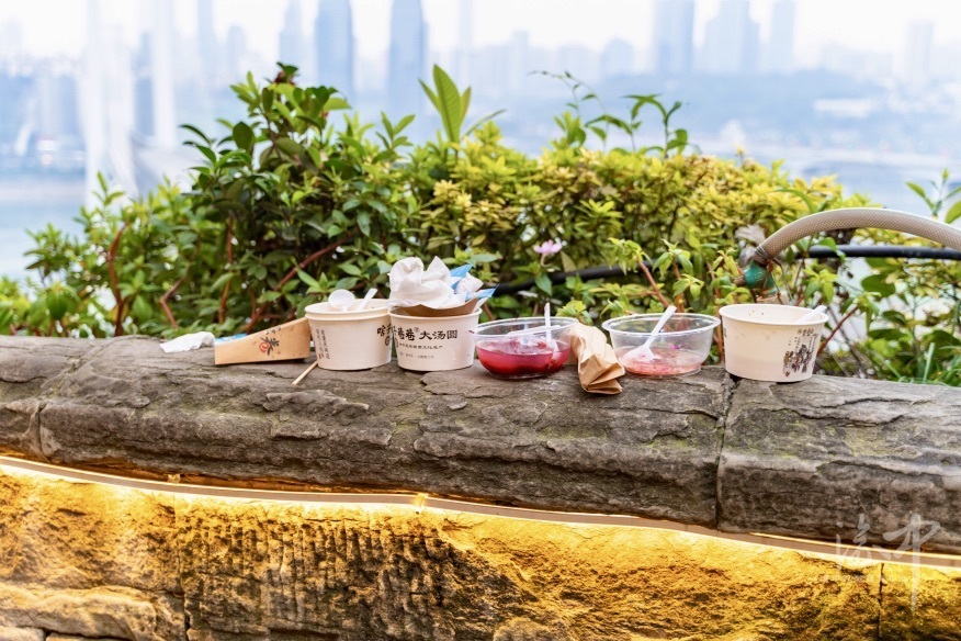山城巷里,部分游客们随手留下垃圾。