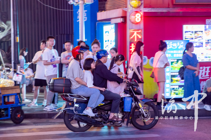 在磁器街,摩托车超载且不佩戴安全头盔行驶。