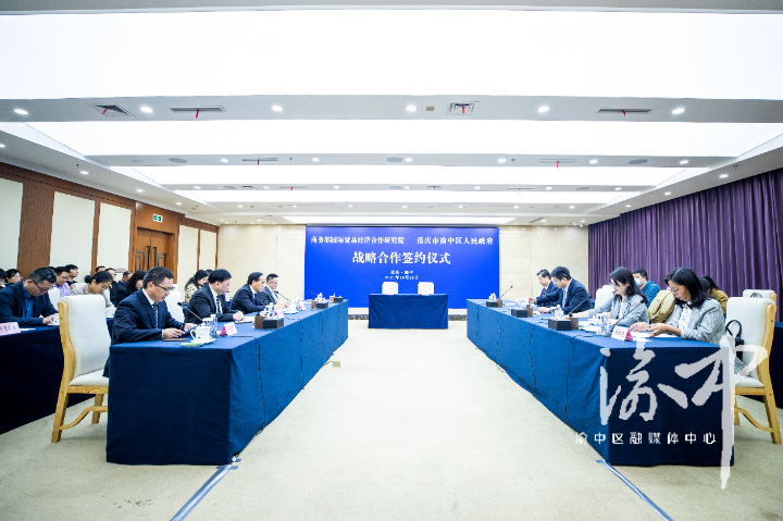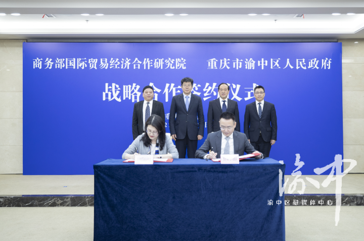 10月25日,渝中区人民政府与商务部国际贸易经济合作研究院(以下简称“商务部研究院”)签订战略合作协议,围绕增强城市商圈活力,加快推进国际消费中心城市核心区建设、倾力打造解放碑—朝天门世界知名商圈,持续深化双方合作。商务部国际贸易经济合作研究院院长顾学明,渝中区政协主席陈大奎,重庆市商务委副主任彭和良出席。商务部国际贸易经济合作研究院副院长张威,渝中区委常委、常务副区长王勇代表双方签约。副区长邓光怀主持签约仪式。