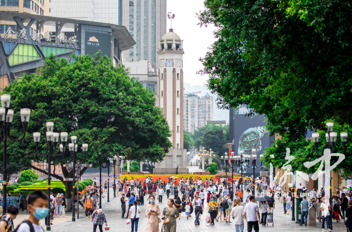 数据显示,近年来,按照国家商务部关于商圈建设的工作精神,在市商务委的指导支持下,渝中大力推进商业、商务、商圈建设发展,以解放碑商圈为重点,扩容提质640万方商业商务载体空间,集聚了40%的市级金融机构,50%以上的品牌专业服务机构,23栋亿元税收楼宇,服务贸易额居全市第一,以不到全市0.004%的土地面积创造了2.3%的地区生产总值,地均产出位列全国中央商务区第一。