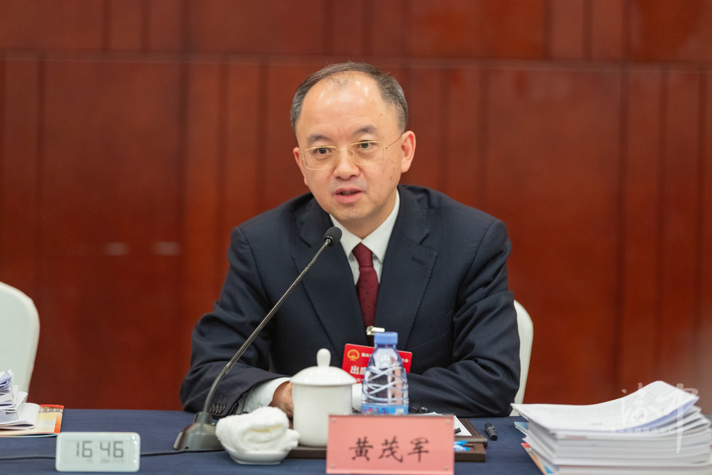 市人大代表、副市长、渝中区委书记黄茂军审查计划报告和草案、预算报告和草案。