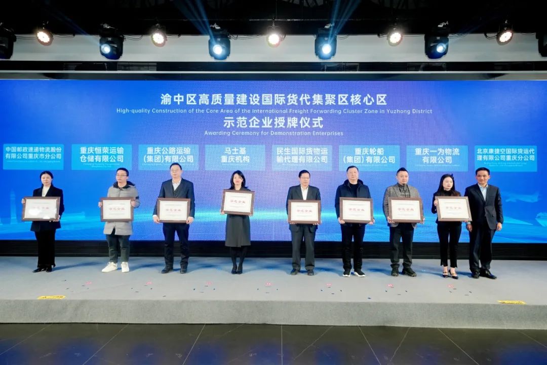 为加快推进重庆国际货代集聚区建设,2024年12月31日,重庆市渝中区高质量建设国际货代集聚区核心区启动仪式在渝中区招商中心举行。马士基、法国达飞等国际货代企业、国际物流企业、国际贸易企业,重庆市国际物流口岸服务协会、市进出口商会和荷兰物流协会等涉外商协会,新加坡企发局、香港贸发局等涉外机构参加启动仪式。