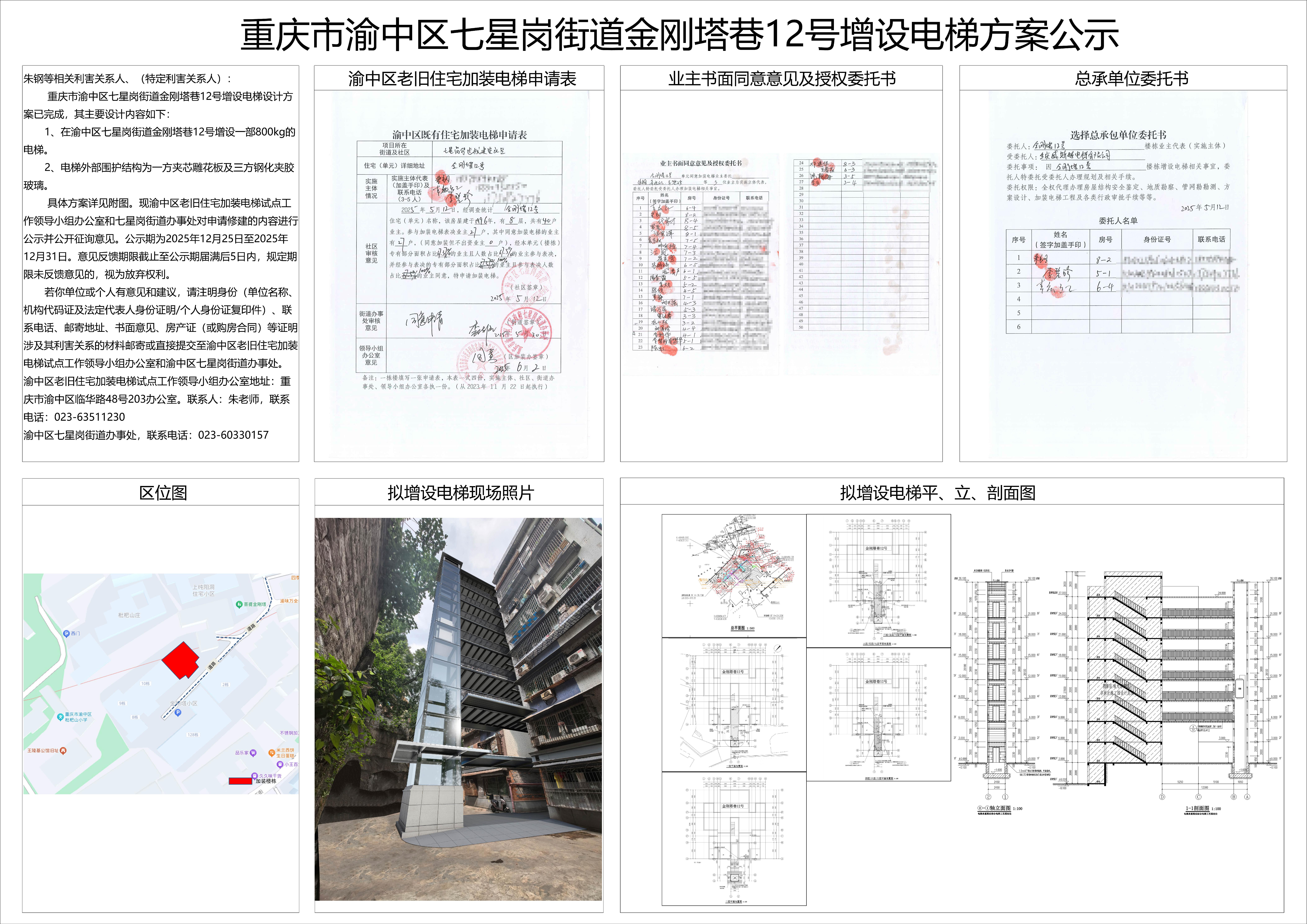 重庆市渝中区七星岗街道金刚塔巷12号增设电梯方案公示