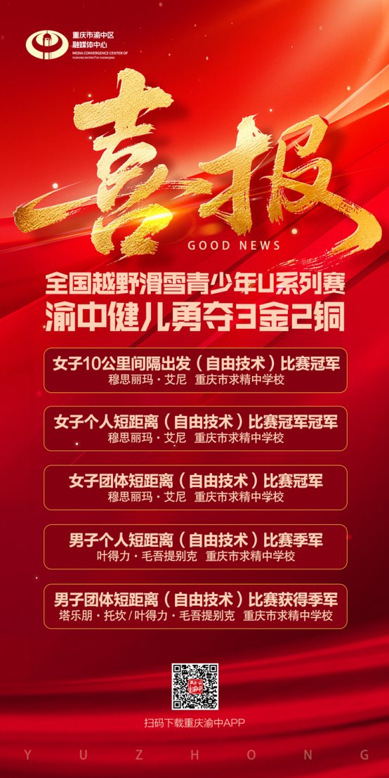 海报|全国越野滑雪青少年U系列赛 渝中健儿勇夺3金2铜