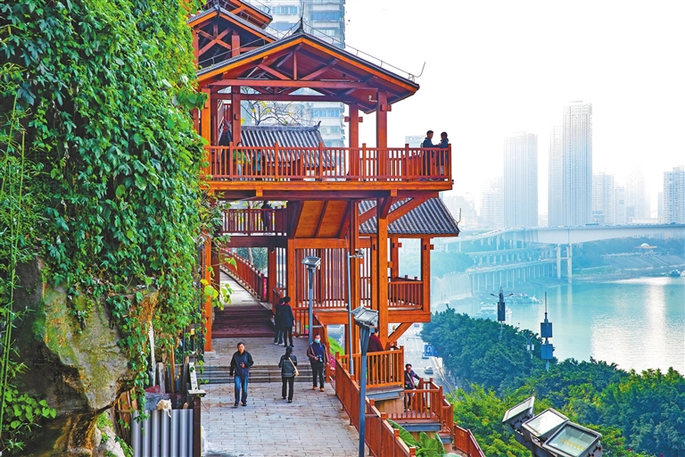 这几天,山城迎来难得的好天气,不少市民、游客到戴家巷崖壁步道观光游览。 记者 何 超 摄