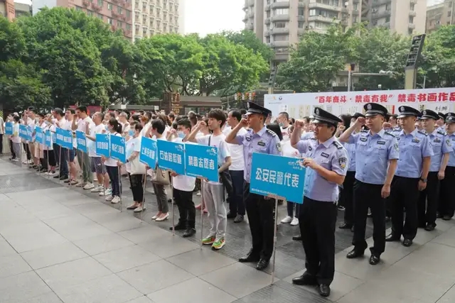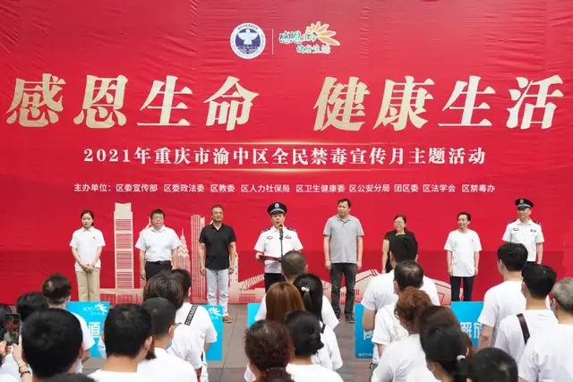 6月11日上午10点,“感恩生命、健康生活——2021全民禁毒宣传月”主题活动,在解放碑国泰艺术中心广场正式启动。活动通过禁毒主题书画展、现场绘画创作、仿真毒品模型展示,禁毒知识闯关问答等丰富形式,帮助市民远离毒品、珍爱生命。