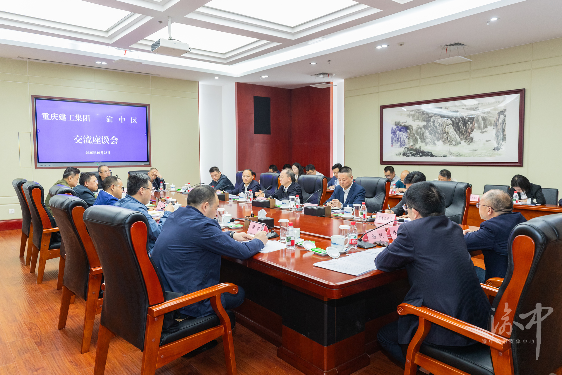 10月23日下午,渝中区委书记黄茂军,区委副书记、区长谢东会见重庆建工集团党委书记、董事长孙立东一行。