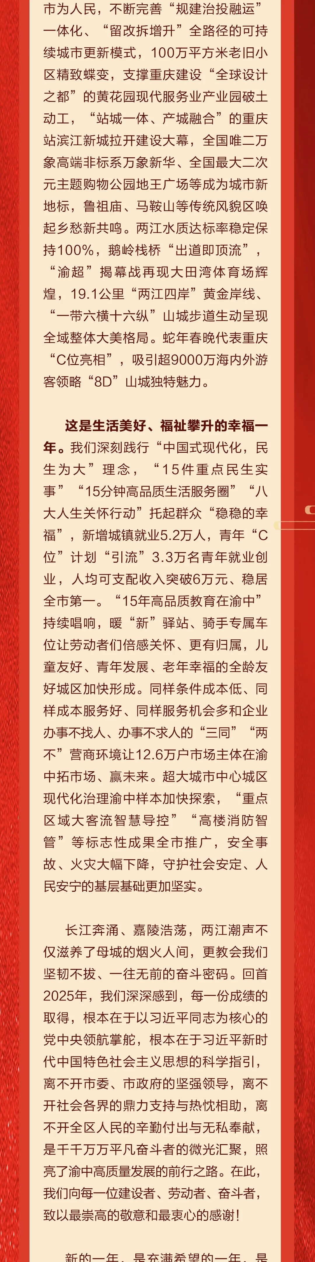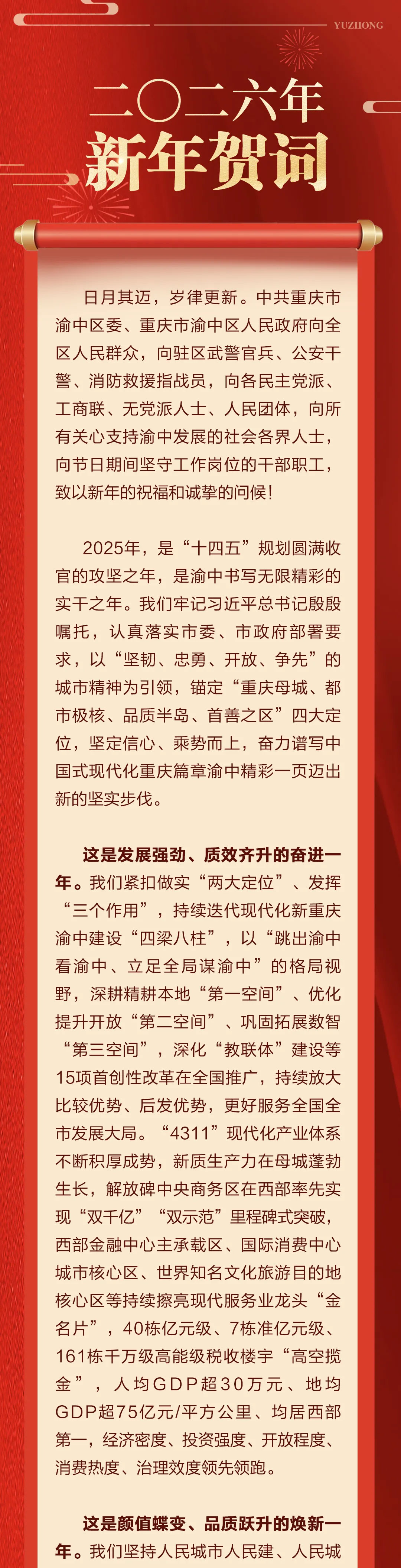 中共重庆市渝中区委、重庆市渝中区人民政府 二〇二六年新年贺词