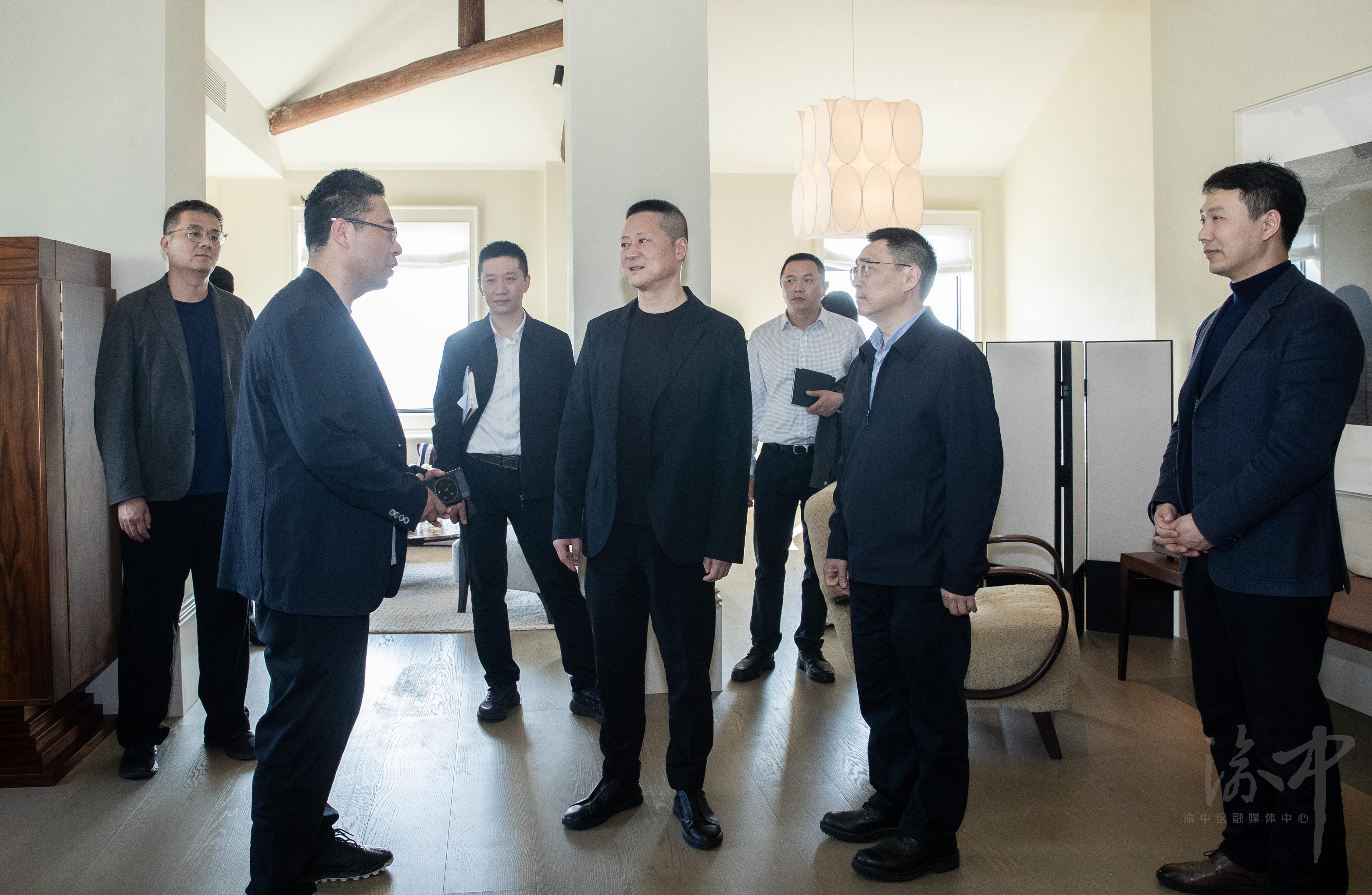 渝中区委书记、区长谢东在化龙桥半山湖畔调研特色非标商业街区精细化运营工作。
