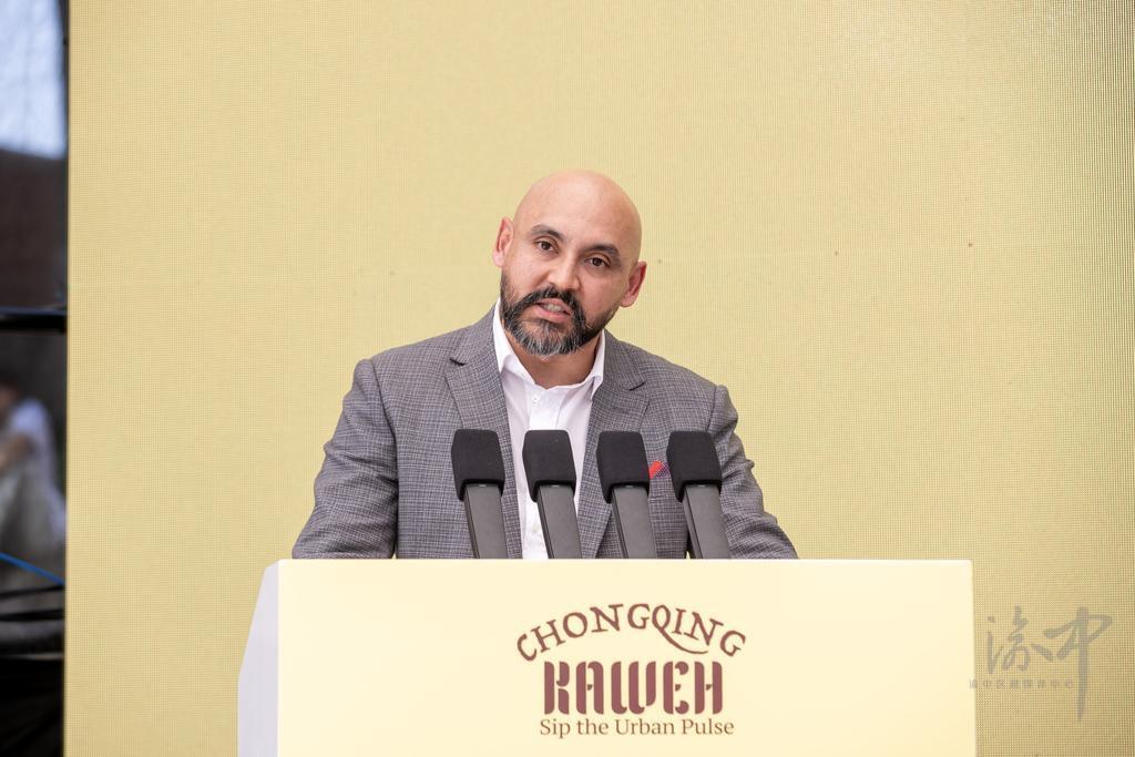 谢东在致辞中表示,咖啡是渝中深度融入西部陆海新通道的有形纽带和醇香见证,是渝中建设国际消费中心城市核心区、培育商贸新质生产力的强劲引擎与时尚标识。当前,渝中正提速建设国际货代集聚区核心区,加快构建重庆-东盟国际咖啡贸易双向通道,深度链通全球20余个核心产区,区内知名品牌区域总部云集,咖啡门店占全市超1/5、密度全市第1,“双千亿”解放碑世界知名商圈更是以每平方公里超193家的“咖啡浓度”领跑全国,全区咖啡茶饮产业规模超30亿元、同比增长超20%。渝中将持续放大重庆国际咖啡嘉年华平台势能,全力构建“时时可咖、处处先锋”的咖啡消费新矩阵、建设“全链融合、要素齐备”的咖啡产业新高地、打造“连通四海、货通八方”的咖啡贸易新枢纽,聚力打造消费活力强劲、品牌效应突出、产业特色鲜明、创新氛围浓厚、具有全国影响力的咖啡风尚之城。