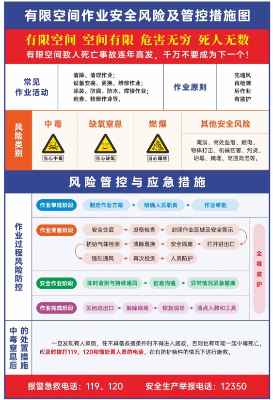 (三)强化作业规范,严格“两个流程”。所有涉及有限空间等有毒有害企业、场所要严格遵守操作规范。一是作业前严格“三检查”。检查作业环境是否安全,检查装备设施是否齐全有效,检查安全防护措施是否到位,不检查不开工,不合格不作业。二是作业中严格“三步骤”。即先通风、再检测、后作业,杜绝冒险作业导致事故发生。
