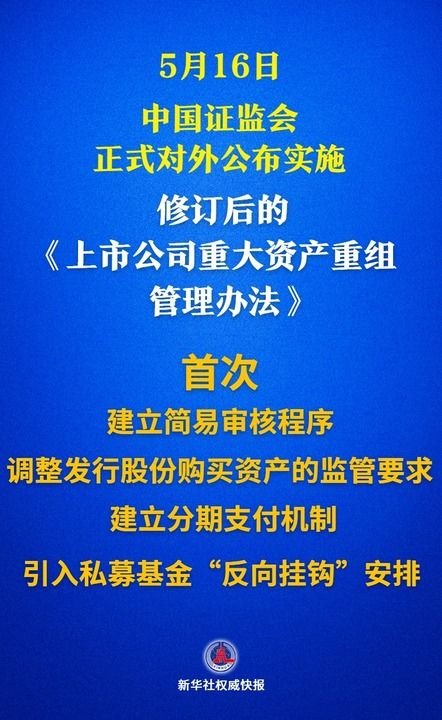 5月16日,资本市场又一重磅新规落地——中国证监会正式对外公布实施修订后的《上市公司重大资产重组管理办法》。