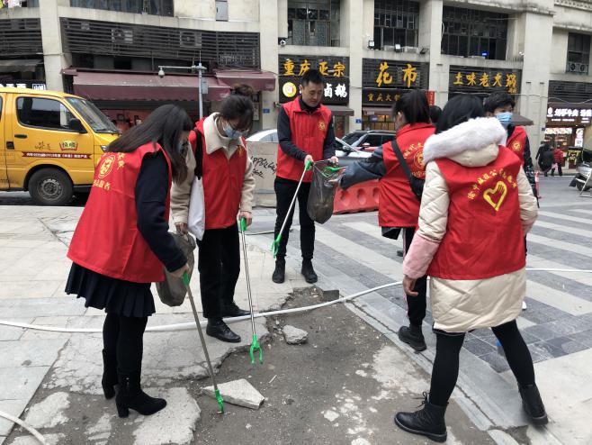 12月4日,积极响应区政府号召,参加了“我是志愿者 共建文明城”国际志愿者日渝中区新时代文明实践志愿服务活动,走上街头与解放碑街道办事处一起对所辖区域卫生死角进行了清理。