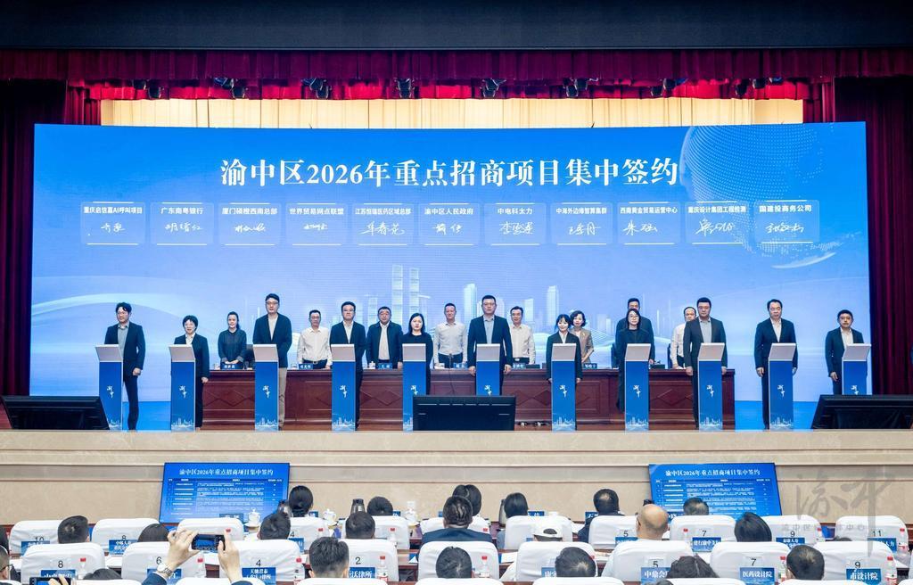 产业发展的蓬勃态势,得益于招商引资的“源头活水”。4月16日,渝中区2026年优化营商环境大会召开,会上共签约项目40个,签约总金额达159亿元。默沙东重庆分公司、硕橙科技项目、艾氪人工智能、重庆李若桃、国信中健等24个招大引强项目成功落地。