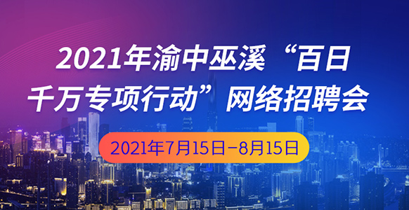 为切实做好“稳就业”相关工作,充分发挥政府和市场的积极作用,加大就业精准帮扶力度,促进高校毕业生、农民工、城镇失业人员、脱贫人口等各类群体稳定就业,同时,为加快推动成渝地区双城经济圈建设,推进“一区两群”对口协同发展工作实施,7月15日至8月15日,重庆市渝中区联合四川省成都市锦江区、重庆市巫溪县成功举办2021年“百日千万专项行动”网络招聘会。