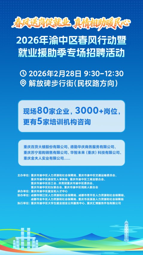 2026年渝中区春风行动暨就业援助季专场招聘活动