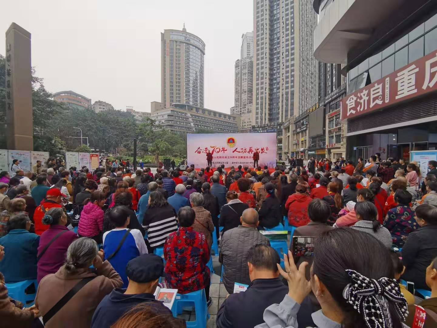 10月30日,渝中区人民防空办公室携手七星岗街道党工委、办事处,在七星岗街道归元寺社区举办“奋进70年·人防再出发”大型主题宣传活动。《我和我的祖国》《我们都是追梦人》《诗意中国》等精彩纷呈、形式多样的表演吸引了许多过路群众驻足观看,激发了群众的拳拳爱国之情。《苦难不能忘记 警钟需要长鸣》唤回了现场群众对重庆大轰炸时期的惨痛记忆,提醒群众居安思危,扎实学好人防相关知识,做好应战应急准备。活动现场,制作摆放宣传展板50余块,共向居民发放人民防空宣传单各3000余份,赠送防空防灾宣传环保口袋、宣传抽纸各3000余份。
