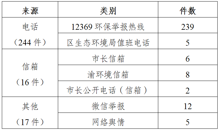 本月受理投诉案件主要来源为“12369环保举报热线”受理,共239件,其次为微信举报12件。