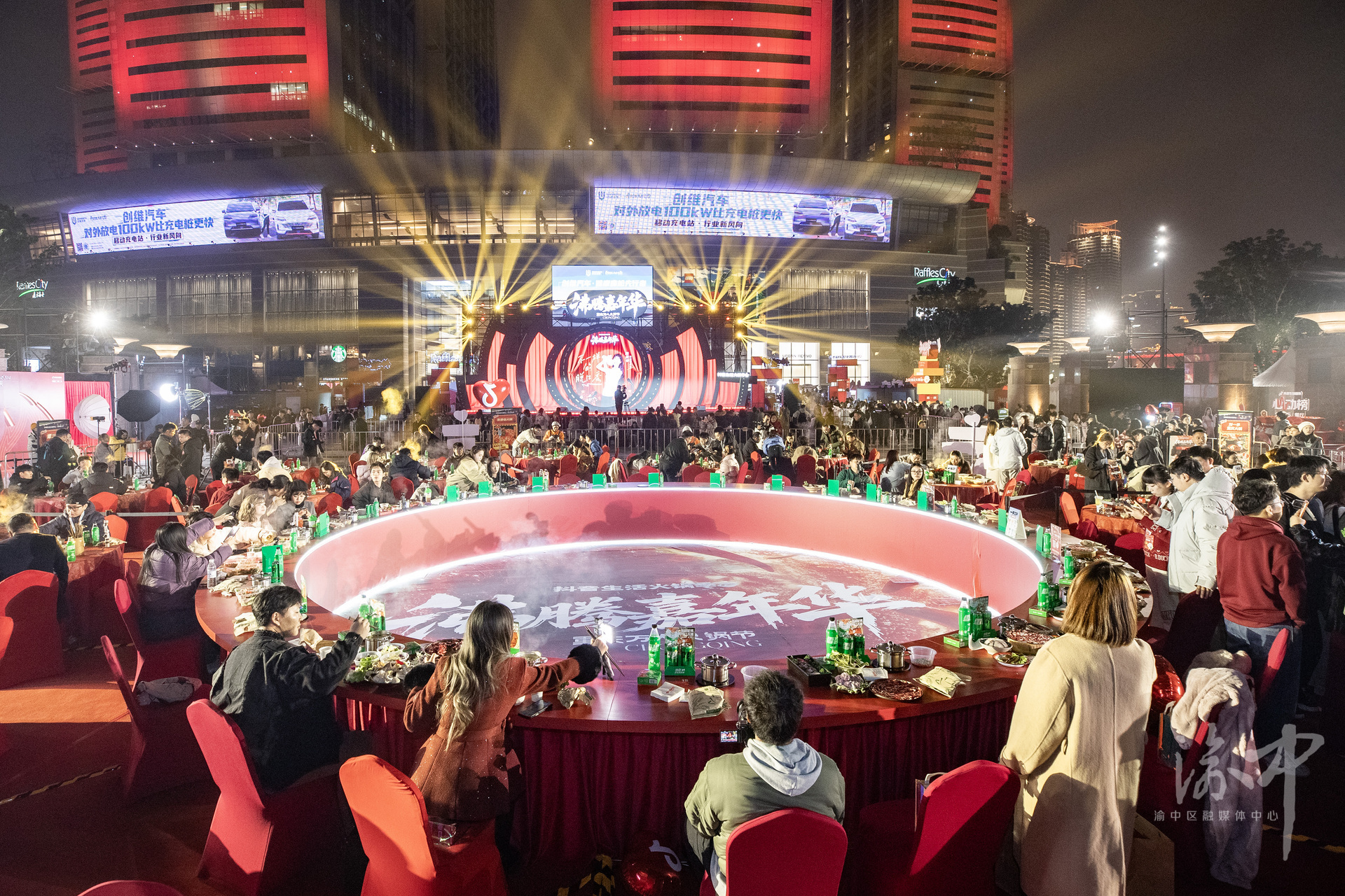 12月19日晚,抖音生活火锅季沸腾嘉年华暨重庆万人火锅节启动仪式在朝天门广场举行。渝中区委书记黄茂军出席。重庆市商务委主任章勇武,渝中区委副书记、区长谢东,抖音生活服务内容与营销副总裁涂晴致辞。重庆市商务委副主任李巡府,渝中区委常委、常务副区长邓光怀,抖音集团重庆公司负责人殷勇,懂车帝巨懂车总裁向锐参加。