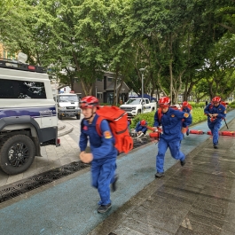 (一)专业技能训练。本周,渝中支队周一到周六分别组织了无人机搜救模拟、指挥部搭设、森林灭火班组、竖井救援、无齿锯实操等专业技能训练,累计组织专业技能训练10学时,共计54人次参训。