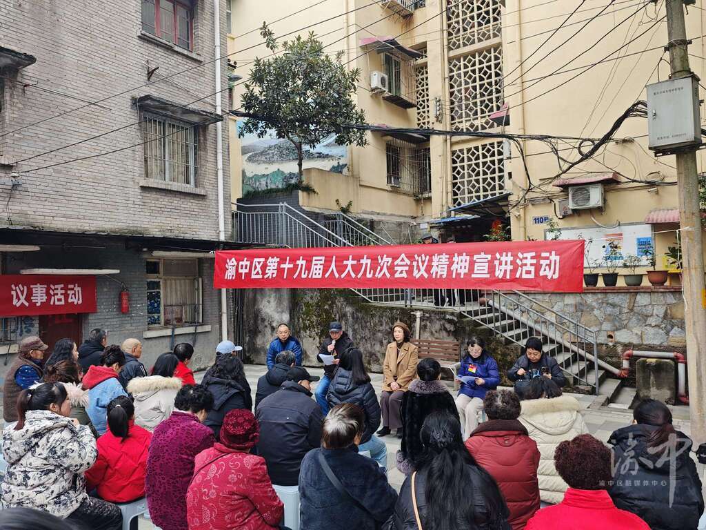 渝中区人大代表走进两路口街道国际村社区宣讲区两会精神。