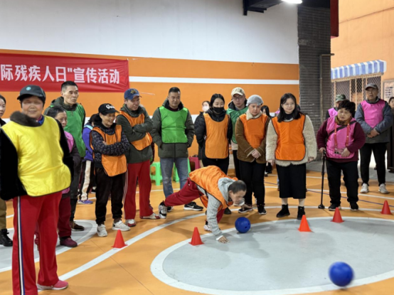 飞盘在空中划出优美弧线,稳稳击中九宫格目标;六双手通过绳索精准控制钩子,一块块积木被小心垒成高塔;保龄球滚过赛道,瓶体倒地声与欢呼声交织成一片……近日,渝中区上清寺街道第34个“国际残疾人日”宣传活动暨“融合共享·乐享运动”趣味运动会在嘉西村社区院坝欢乐进行。来自街道各社区的残疾人欢聚一堂,在轻松愉快的比赛中展现团队协作能力和积极向上的精神风貌。