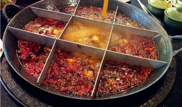 各人认定一格且烫且吃,吃若干块,算若干钱,既经济,又能增加热量……直到民国二十三年,重庆城内才有一家小饭店将它高档化了,从担头移到桌上,泥炉依然,只将分格铁盆换成了赤铜小锅,卤汁、蘸汁也改为由食客自行配合,以求干净而适合重庆人的口味。