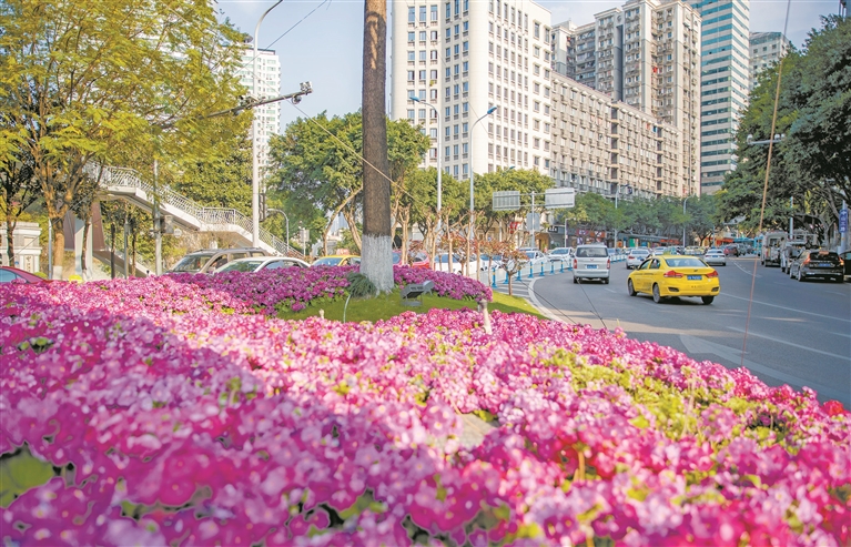 中山四路沿线百花盛开 春意盎然