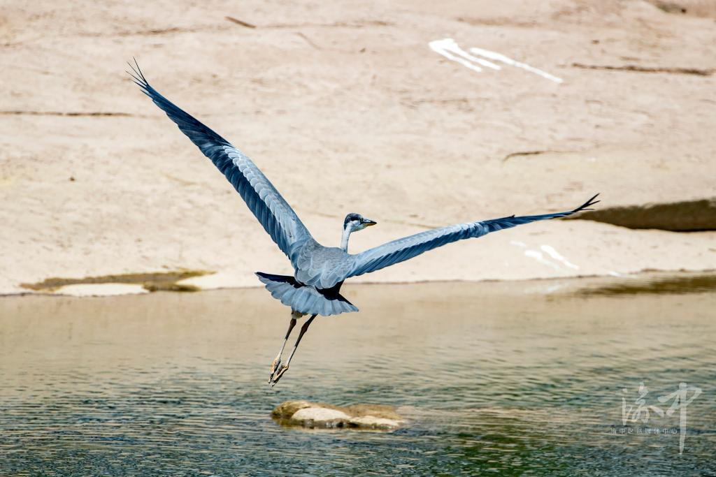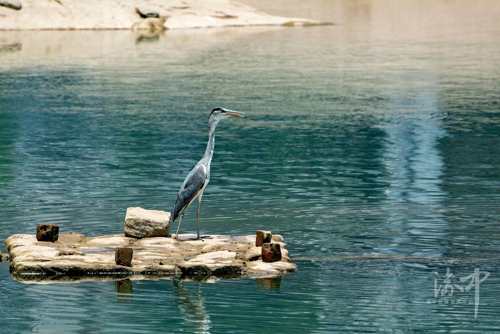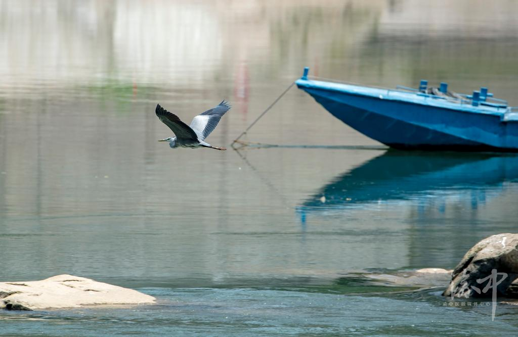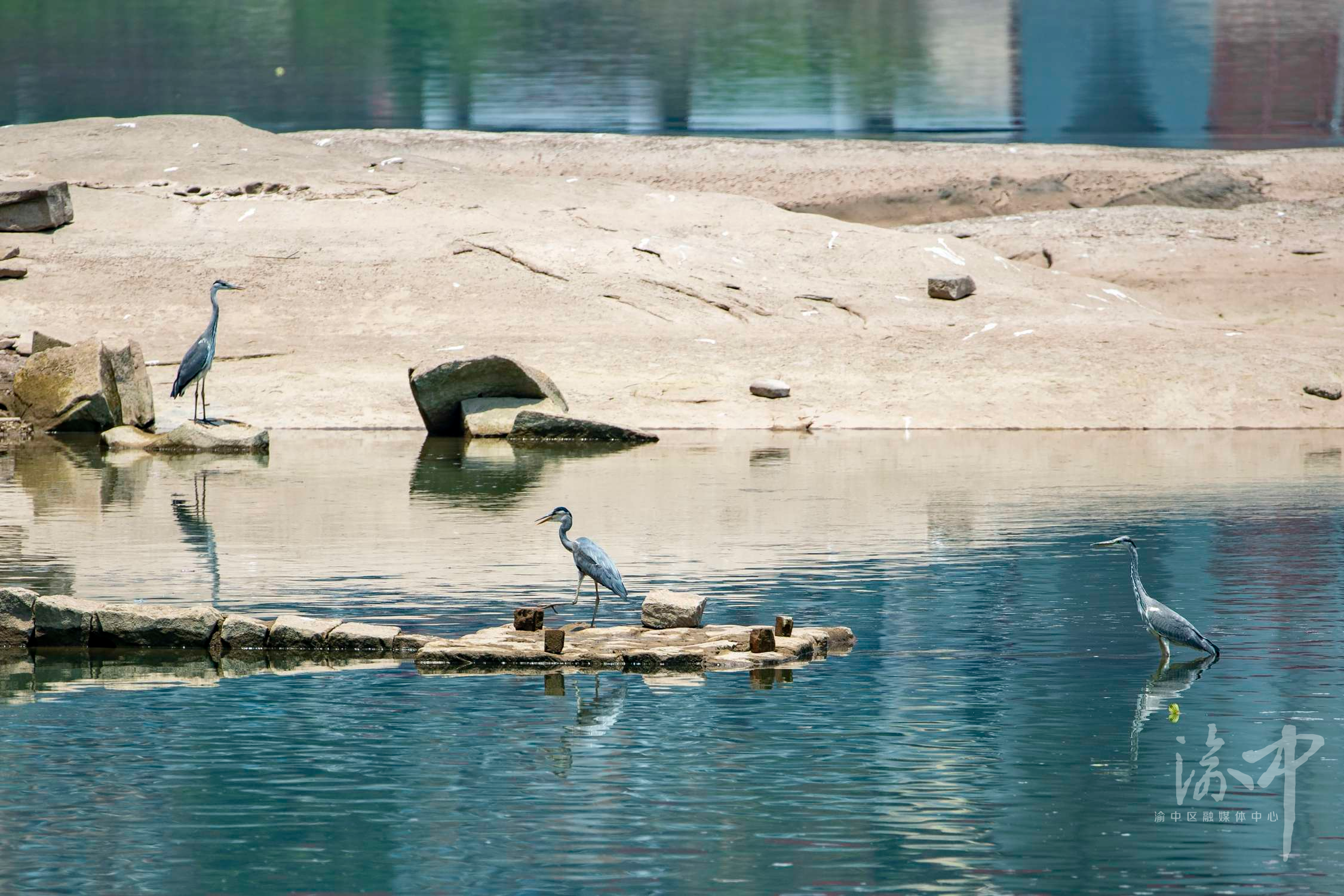 野生水鸟在嘉陵江大溪沟岸边栖。
