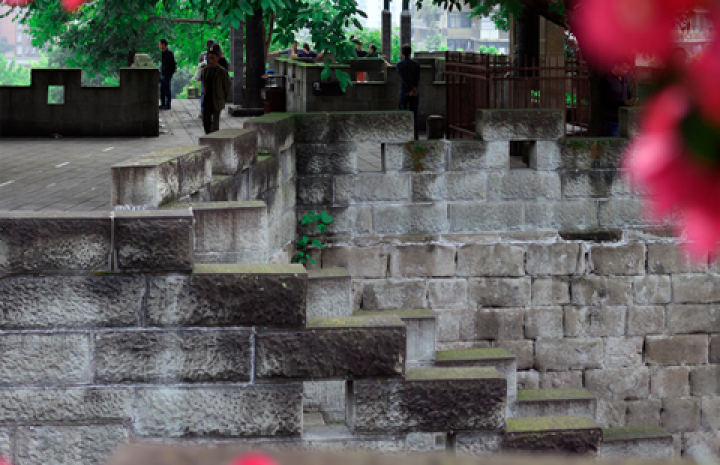 漫步于古城墙步道,昔日烽烟战火的古城墙已在风雨中矗立了近700年,如今,这里车水马龙,人头攒动,卖小吃的小贩竭力吆喝,赶路的行人匆匆忙忙,充满着浓浓的重庆市井气息。