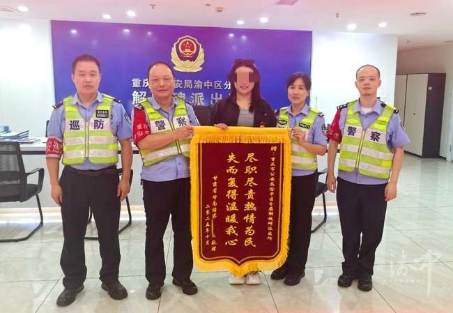 “找不回钱包,我没法安心离开!重庆民警效率太高,这份温暖我会一直记在心里!”卢女士激动地说。离渝前,卢女士还特意制作一面写有“尽职尽责热情为民 失而复得温暖我心”的锦旗,送到解放碑派出所,向民警表达感谢。