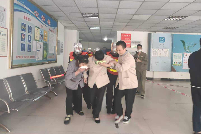 接着,随着警报声响起,应急疏散演练正式开始。在疏散人员的引导下,大家立即进入戒备状态,用湿毛巾科学捂住口鼻,躬身扶墙有序逃离“火场” 。