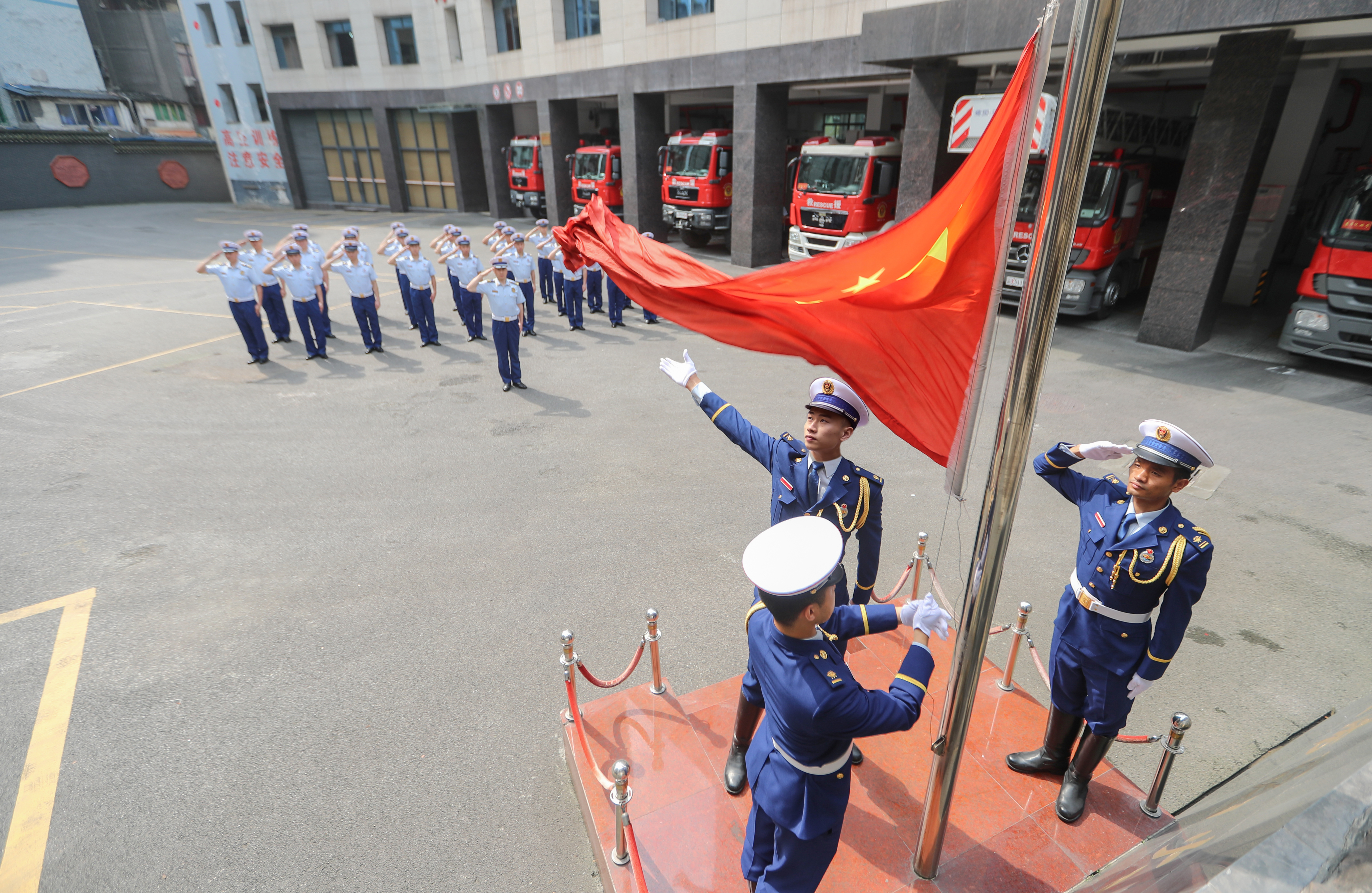 渝中区较场口消防救援站组建于2019年,其建队历史可追溯至1920年,担负着渝中半岛解放碑周边近5平方公里的灭火救援、抢险救灾和消防安保任务,是一支历经抗战时期重庆大轰炸洗礼,承载中越边境自卫反击战、汶川抗震救灾参战荣光的英雄队伍。