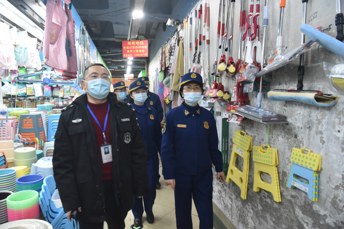 在朝天门市场,张雪梅支队长一行实地走访查看了金海洋商场、恒生商场、银星商场,仔细听取了各商场负责人就日常消防管理工作开展情况的汇报,详细了解了各商场消防安全主体责任落实、消防安全保障工作措施、灭火应急预案制定等情况,对单位的微型消防站人员进行原地着装、接警处置、到场拉动测试,并对各商场场消防疏散通道及安全出口是否畅通、应急照明及各类固定消防器材设施配备、电气线路敷设、是否存在可燃物违章搭建、消防控制室值班人员是否在岗在位等进行了细致检查。针对发现的地下库房封堵不严实、通道楼梯间及前室墙上有孔洞、防火卷帘下堆放杂物、商户占用疏散通道经营等问题。张雪梅支队长要求相关责任单位负责人务必要在思想上高度重视,深刻吸取“12.3”火灾教训,进一步压紧压实消防安全责任,把握关键环节,结合各商场经营面积、人流量等实际合理增加安全管理成本,提升安全管理人员数量和技能,不断提高消防安全管理、事故预警和应急处置水平,严防火灾事故发生。