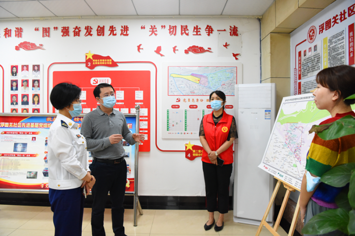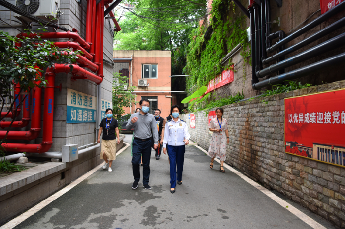 5月24日上午,渝中区消防救援支队张雪梅支队长带队深入辖区肖家湾、天灯堡和浮图关社区督导检查疫情防控和消防安全工作。大坪街道办事处有关负责人陪同。