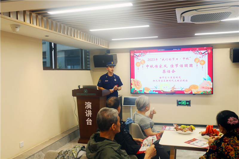 中秋、国庆“双节”将至,为进一步做好消防安全宣传工作,增强居民群众消防安全防范意识。9月28日,渝中区消防救援支队较场口消防站深入归元寺社区开展消防安全知识宣讲活动。
