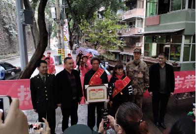 一人立功,全家光荣。2月26日,渝中区委常委、区人武部政委严培一行前往渝中区荣立二等功的现役军人张渺淼家,将立功受奖喜报送到张渺淼父母手中,把党和组织的温暖送到军属家中。