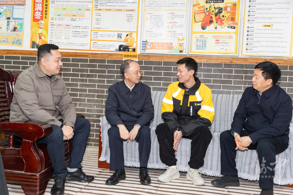 “过年回老家吗?有没有需要帮助解决的问题和困难?”走进骑手驿站,黄茂军与困难职工代表何汶锋促膝交谈,关切询问其工作情况、家庭状况,了解其实际困难。在得知何汶锋主动参与基层社会治理时,黄茂军为他的乐观心态和务实作风点赞,鼓励他在平凡岗位上持续发光发热。黄茂军要求,相关部门和街道要带着责任干工作、带着感情送温暖,主动靠前、真心实意,精准对接困难职工在看病就医、家属就业、子女就学等方面的实际需求,用心用情解决好每一件“关键小事”,不折不扣把帮扶举措做到群众心坎上,让党和政府的温度直抵基层、浸润人心。
