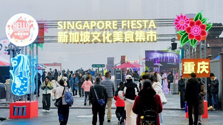 2025年12月12日,“心遇新加坡”(重庆站)文化美食集市启动仪式在渝中区朝天门广场举行,通过美食、表演、音乐等方式,为市民带来一场视觉、味觉与文化的融合宴会。