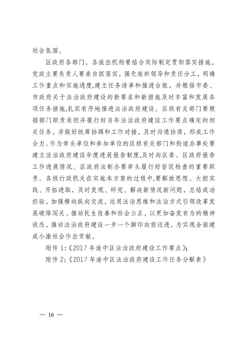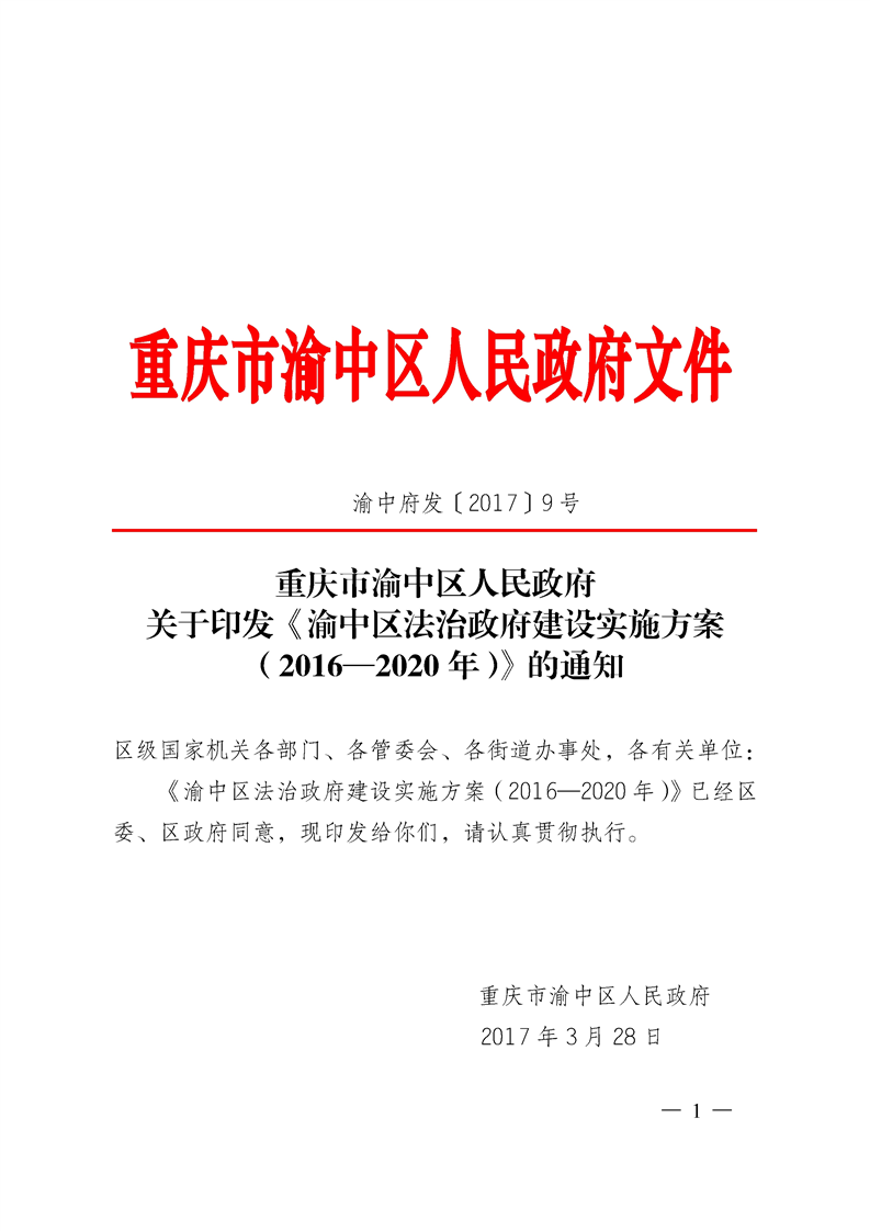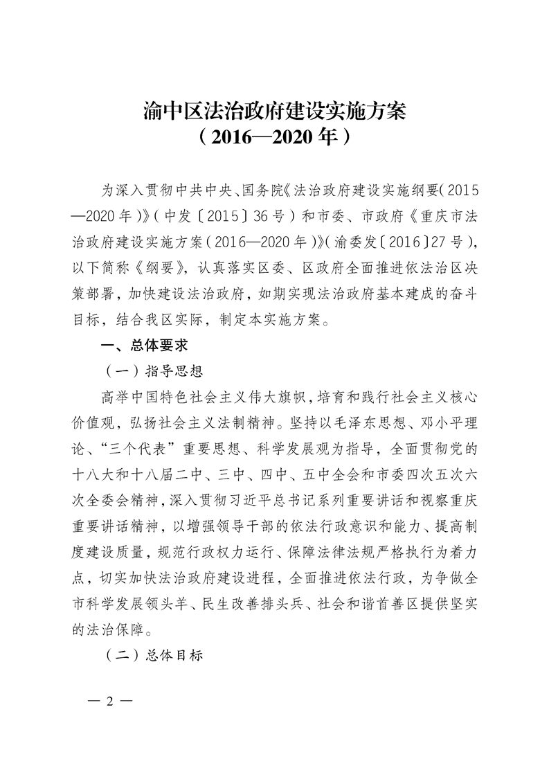 重庆市渝中区人民政府关于印发《渝中区法治政府建设实施方案(2016—2020年)》的通知