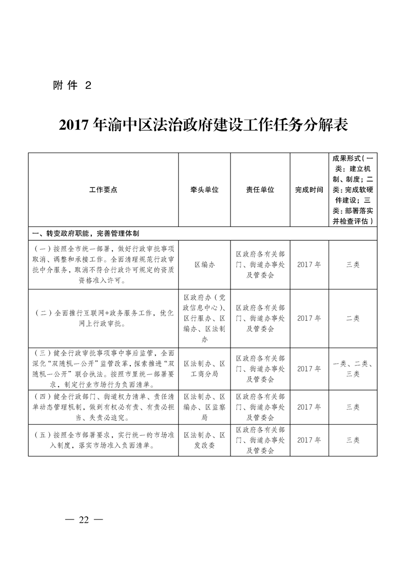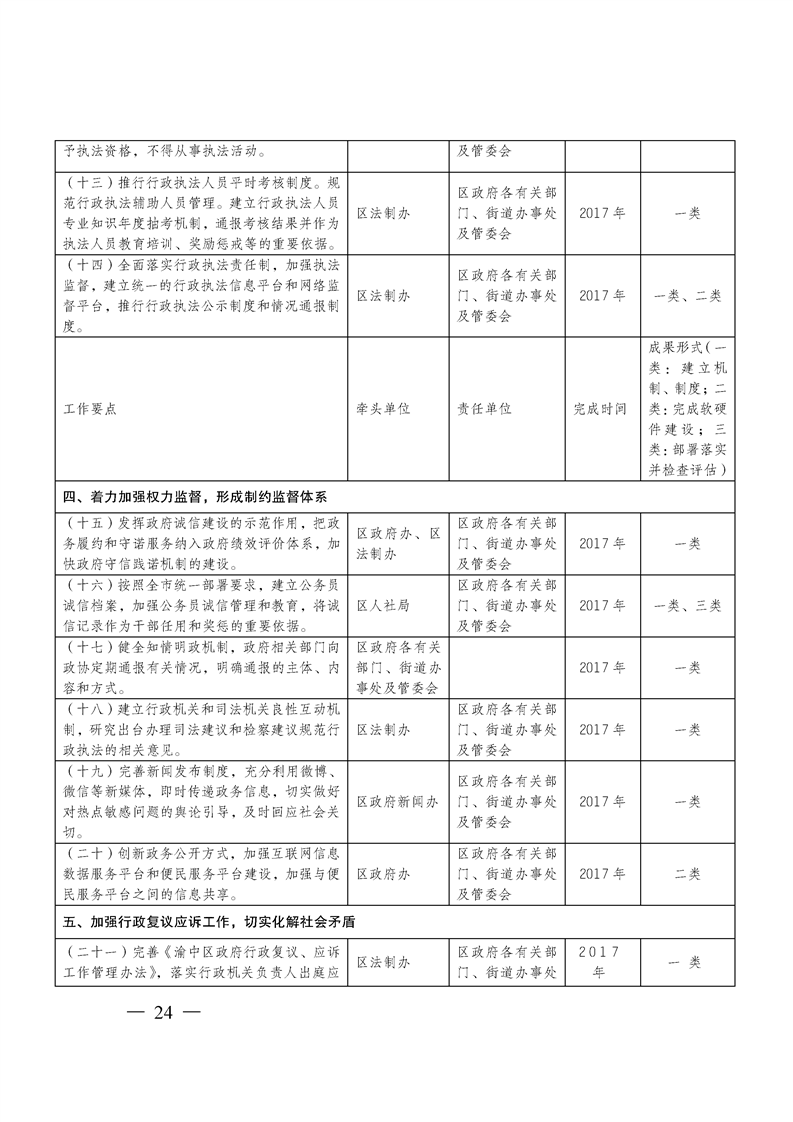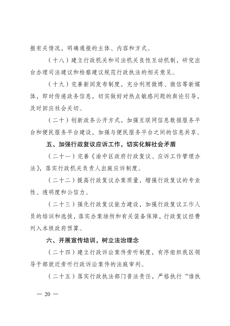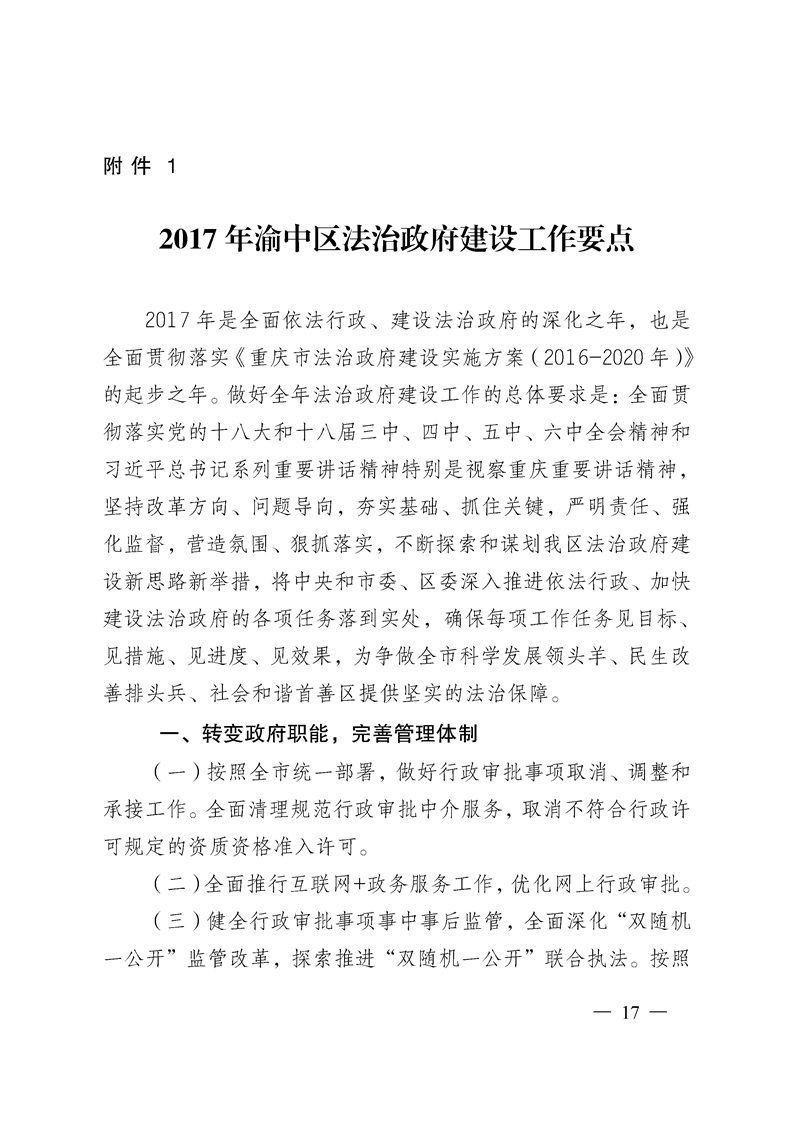 重庆市渝中区人民政府关于印发《渝中区法治政府建设实施方案(2016—2020年)》的通知